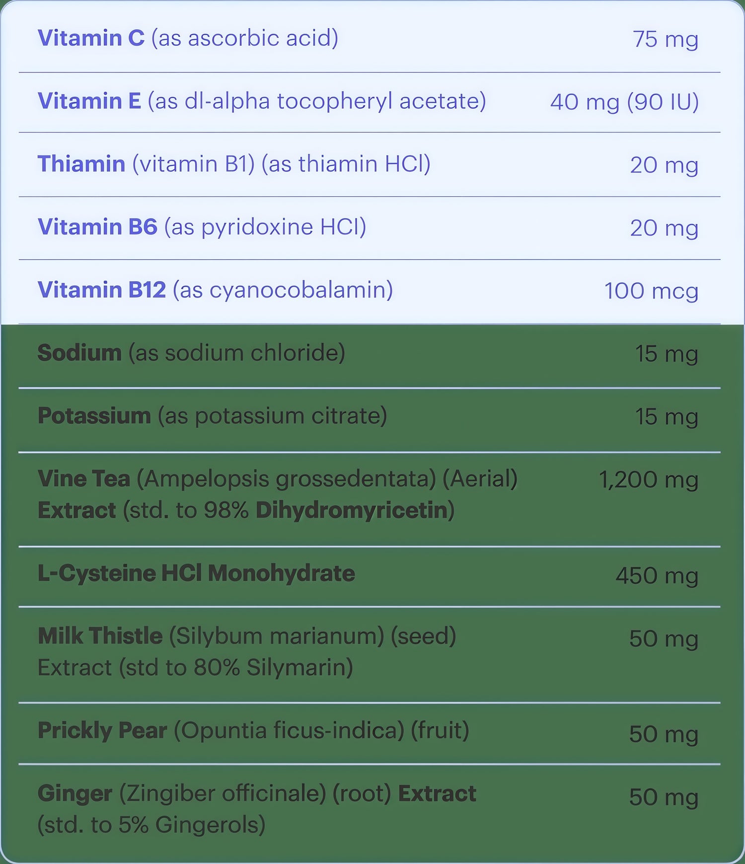 Restore has a patented dual action formula that works to support your liver & help you feel better after drinking.